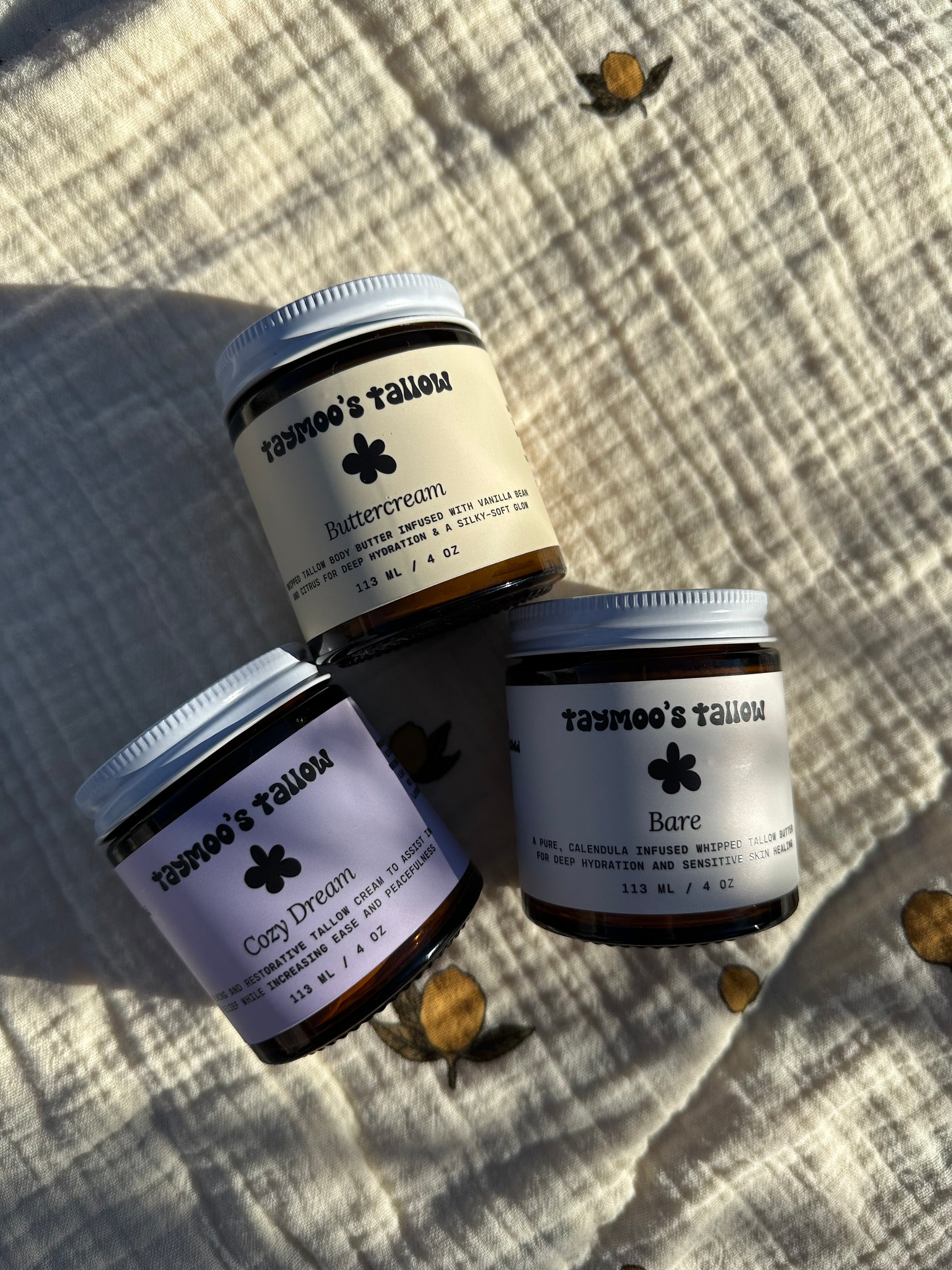 Includes: Bare Whipped Tallow (sensitive skin) + Buttercream Body Butter + Cozy Dream Magnesium Whip